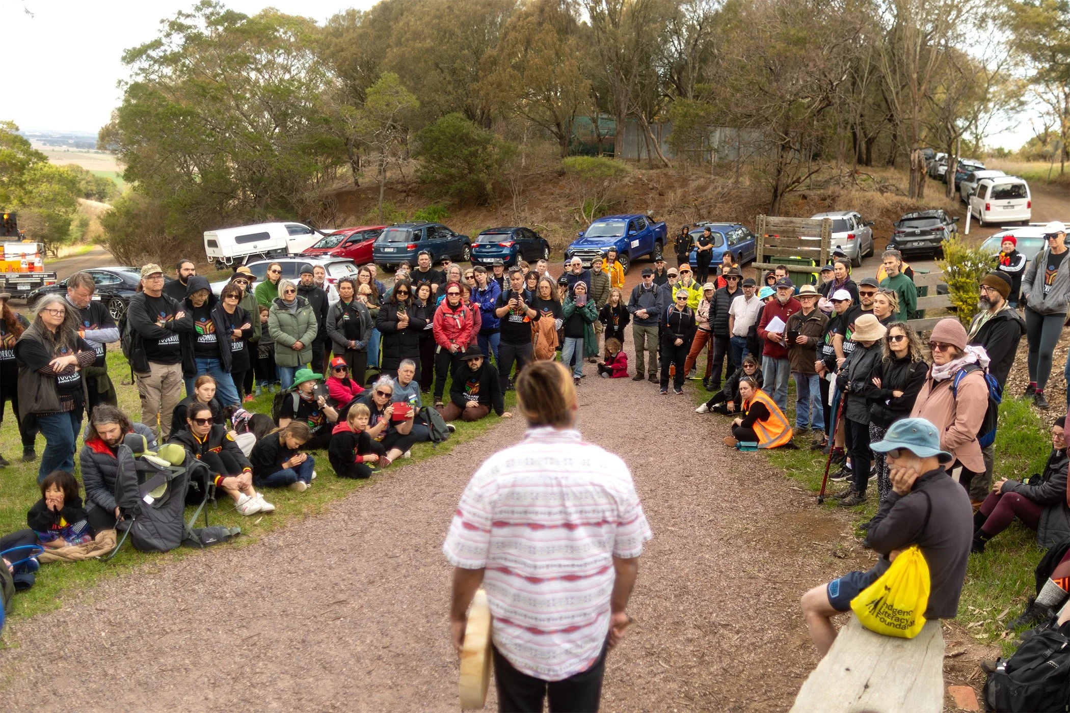 We scouted the full walk route, before releasing legs deemed safe and permitted to the public, to join Deputy Chair Commissioner Travis Lovett on various sections. We used Eventbrite as the ticketing platform and added Cultural experiences and exchanges with Traditional Owners as we crossed Country heading to Naarm. Additionally there were a series of events the public could also become involved in, learning about the work of Yoorrook outside of the Walk.
